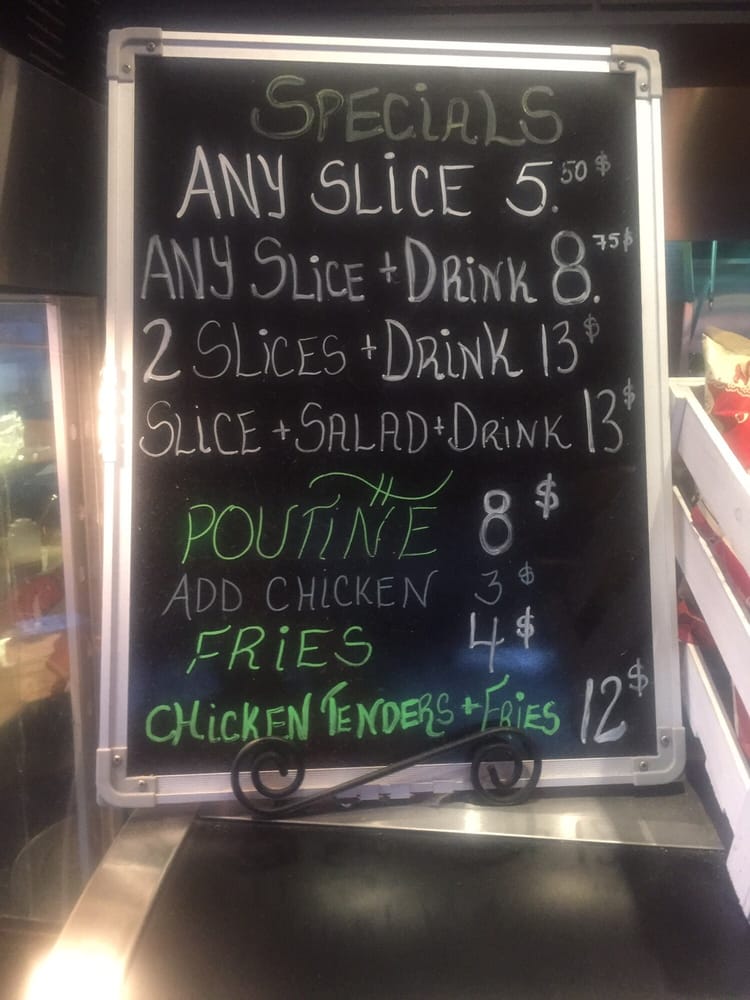 Pepperoni, mushroom, bell peppers, black olives, onion, bacon.